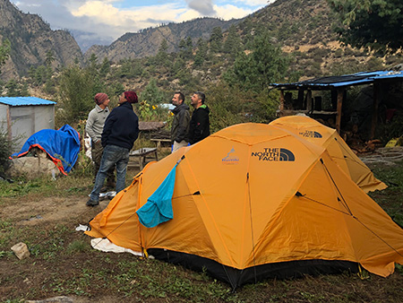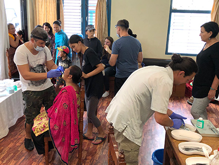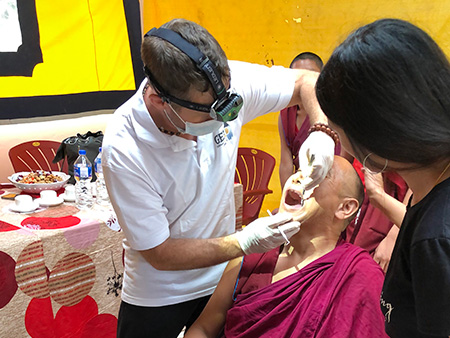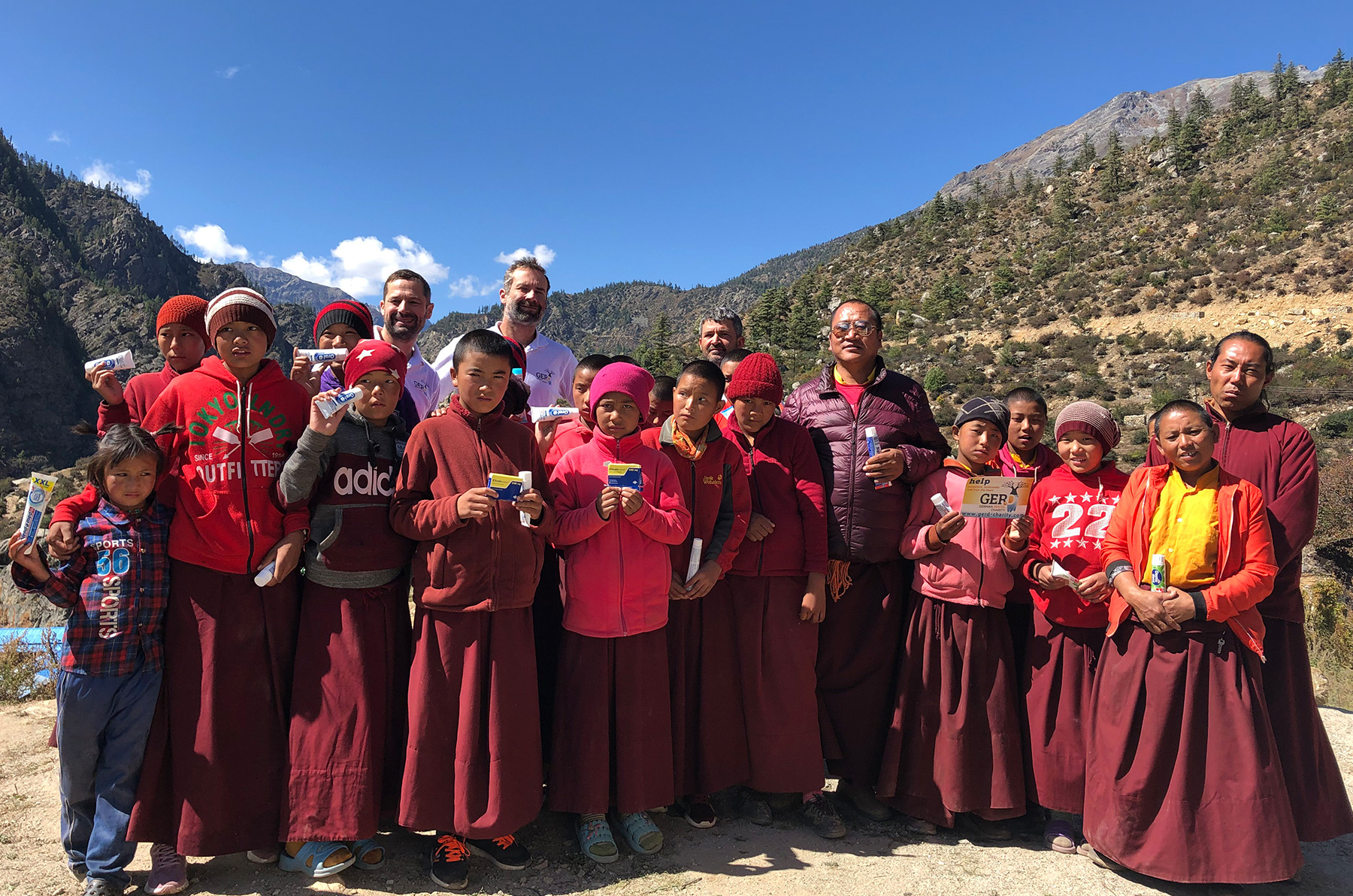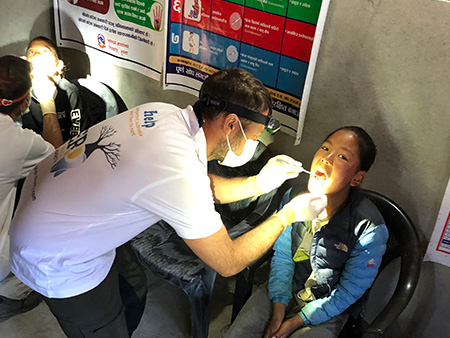 Nach einem mehrtätigen Aufenthalt in Kathmandu, wo wir schon Angestellte und deren Kinder einer Teppichfabrik sowie Mönche in einem Kloster behandelten, flogen wir ins nordwestliche Hochgebirge, nach Simikot. Auf einem mehrtätigem Trekk zu Fuß durch die Gebirgsegion Humla, bei dem wir von einem Guide, mehreren Trägern und Maultieren begleitet wurden, behandelten wir auch hier viele Schulkinder, Mönche sowie Einwohner der Region. Geschlafen wurde während dieser Zeit in Zelten! Die Behandlung erfolgte unter einfachsten Verhältnissen. Dabei untersuchten wir die Patienten, entfernten Beläge und Zahnstein, führten Wundbehandlungen durch und entfernten im Bedarfsfall nicht erhaltungswürdige Zähne. Außerdem hinterließen wir sehr viele Zahnbürsten, Zahnpasten, Seifen/Duschgel sowie Medikamente.